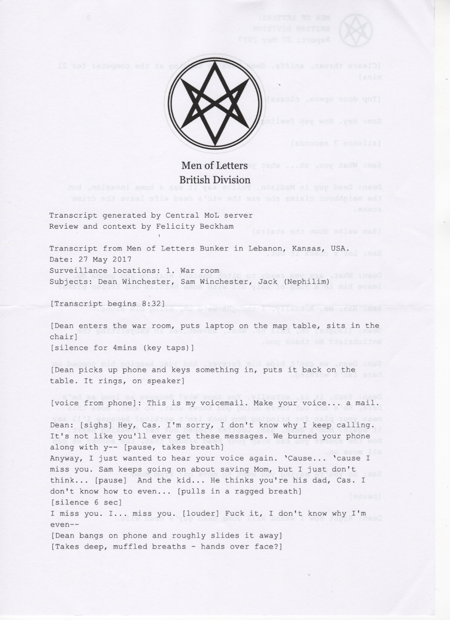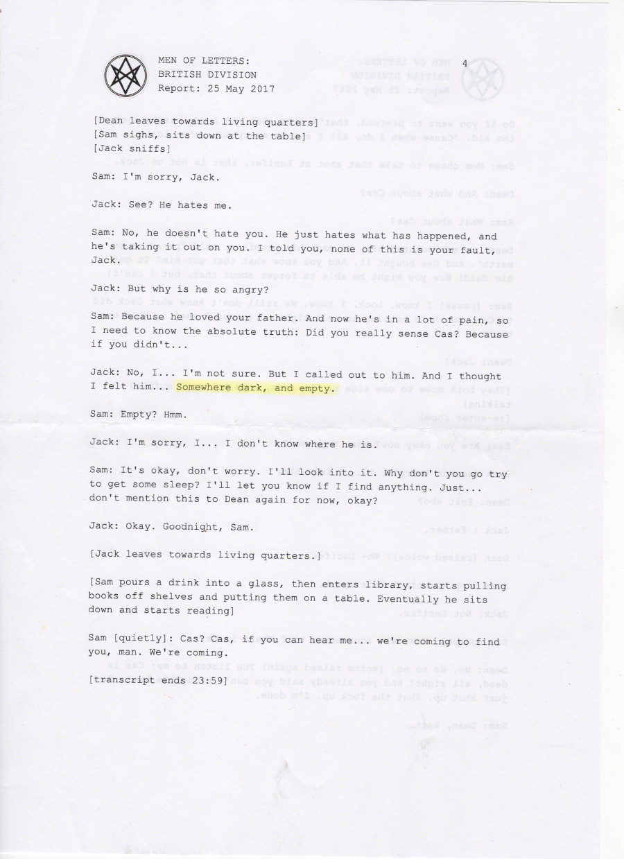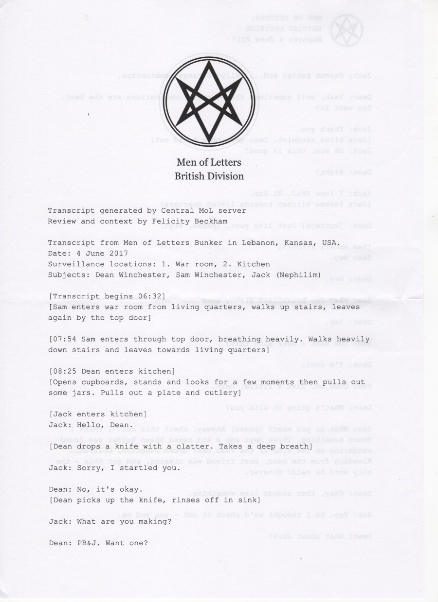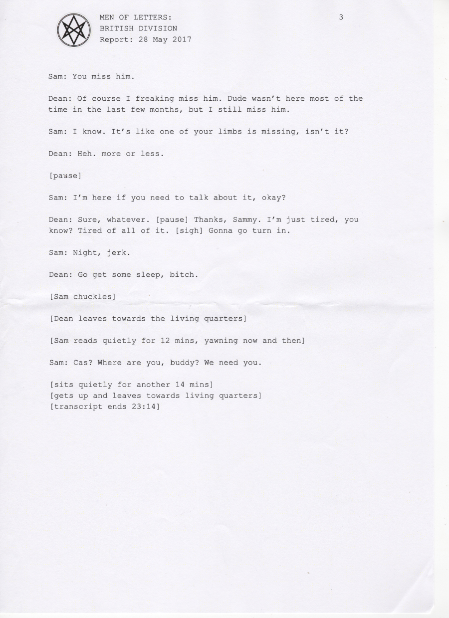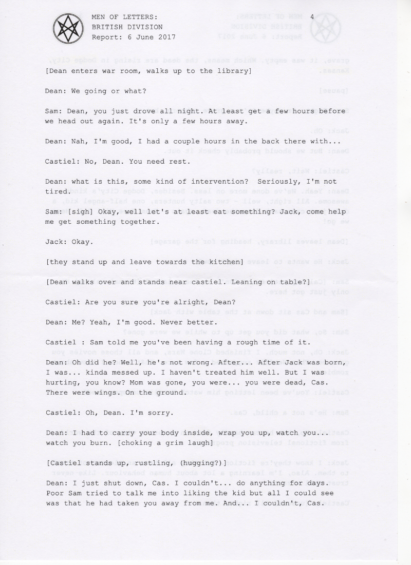 Thanks so much to the wonderful people at supernatural wiki, whose transcript formed the basis of this chapter and saved me a lot of work <3 You're awesome.