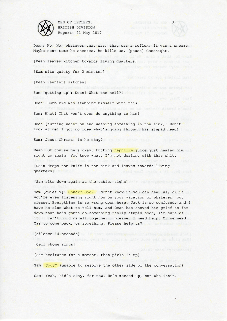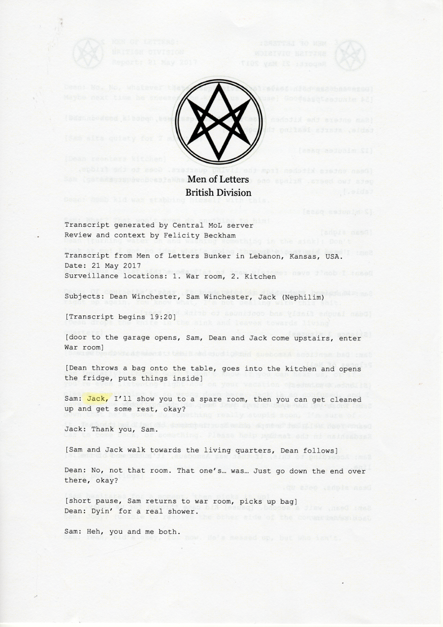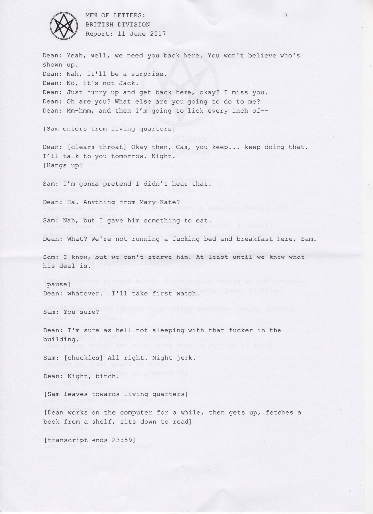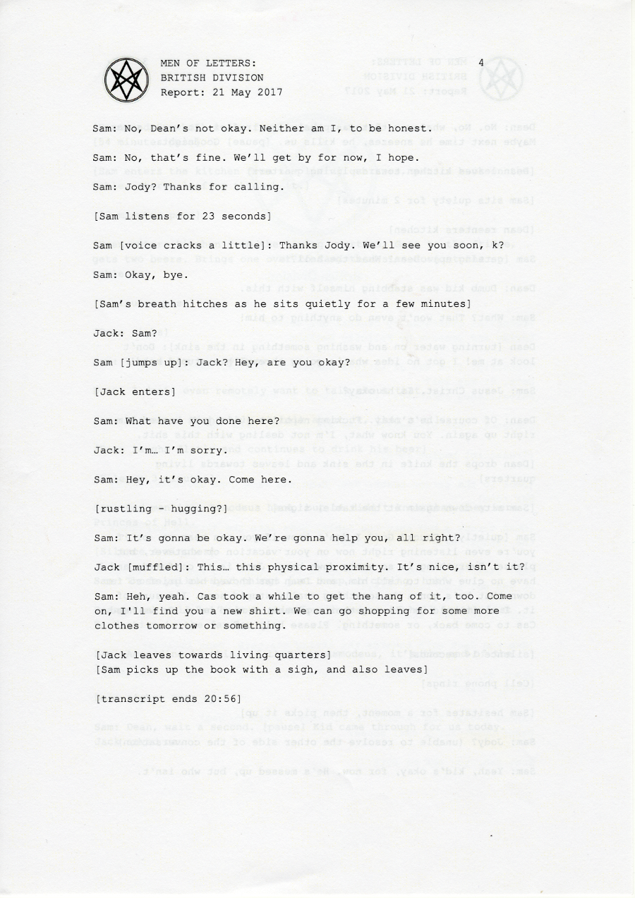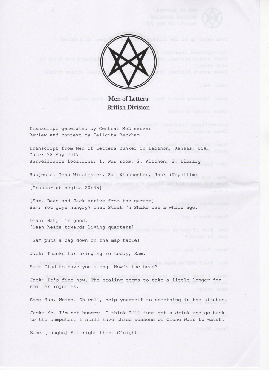 Thanks so much to the wonderful people at supernatural wiki, whose transcript formed the basis of this chapter and saved me a lot of work <3 You're awesome.