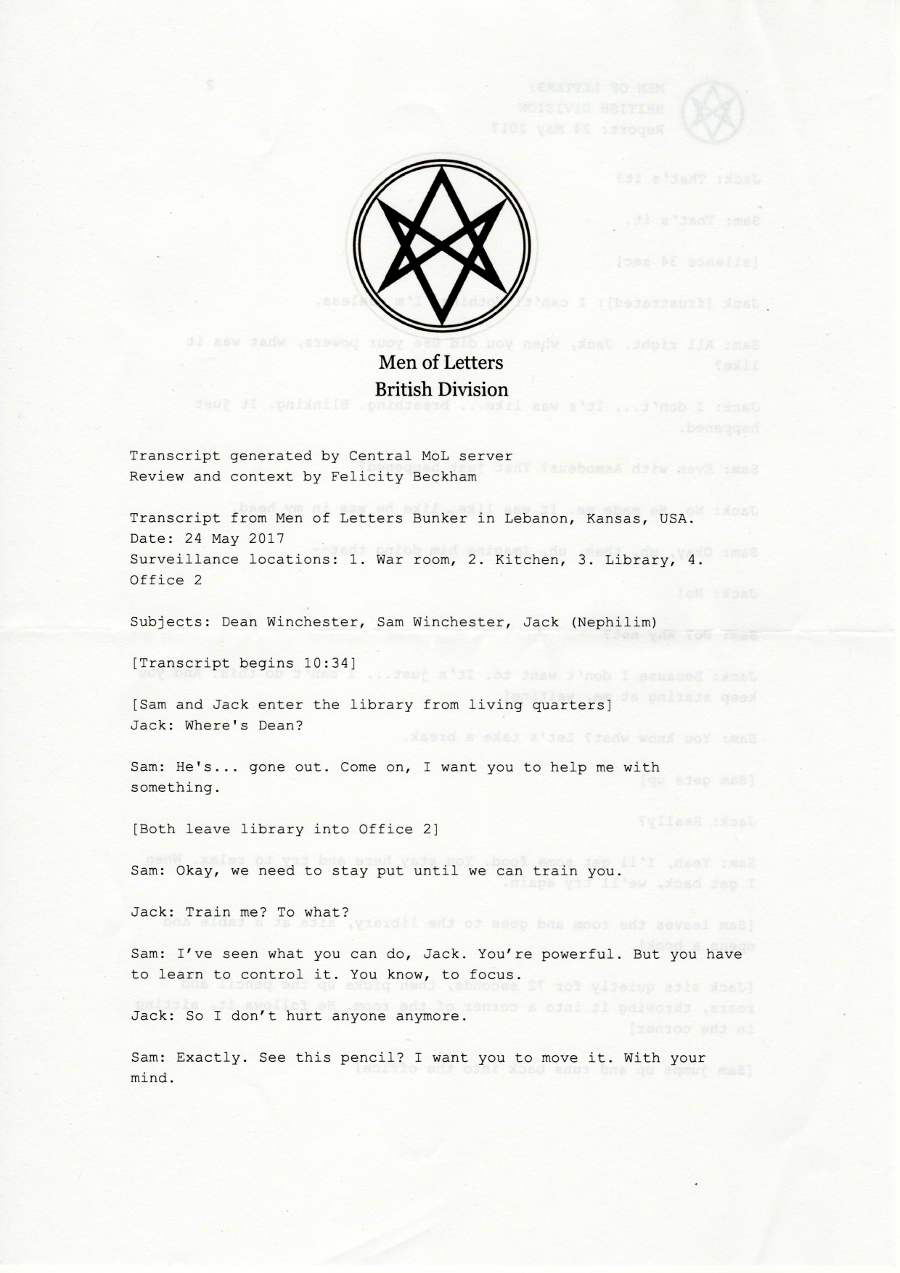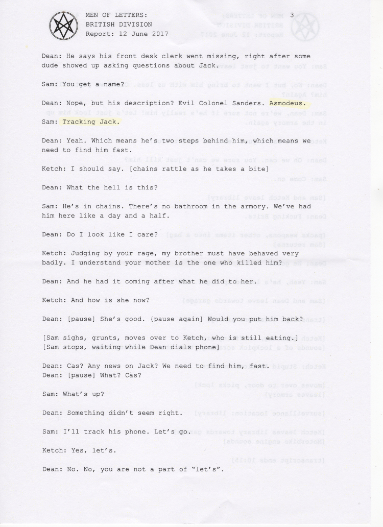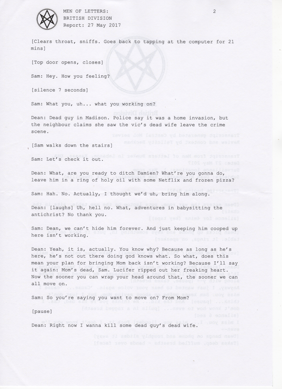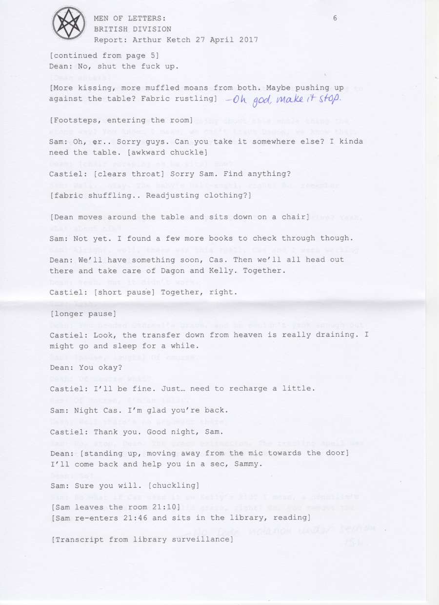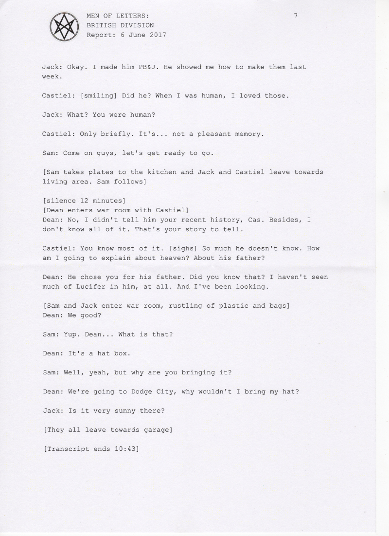 Thanks so much to the wonderful people at supernatural wiki, whose transcript formed the basis of this chapter and saved me a lot of work <3 You're awesome.