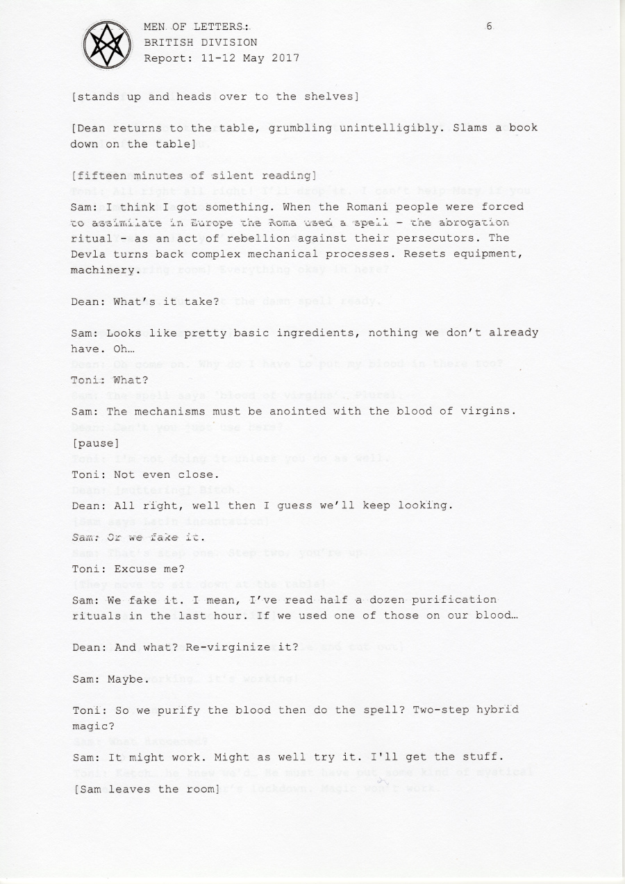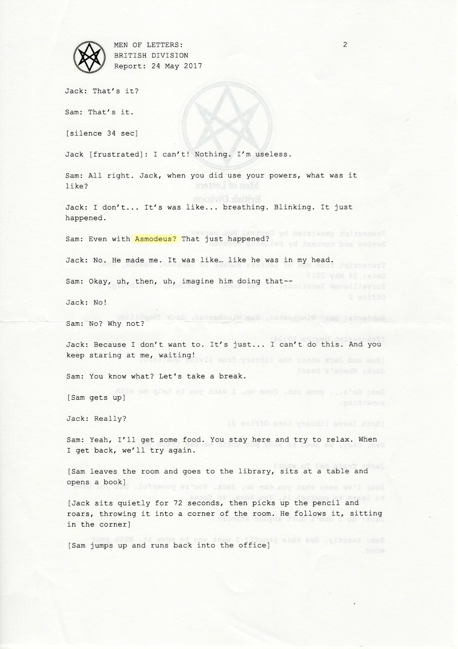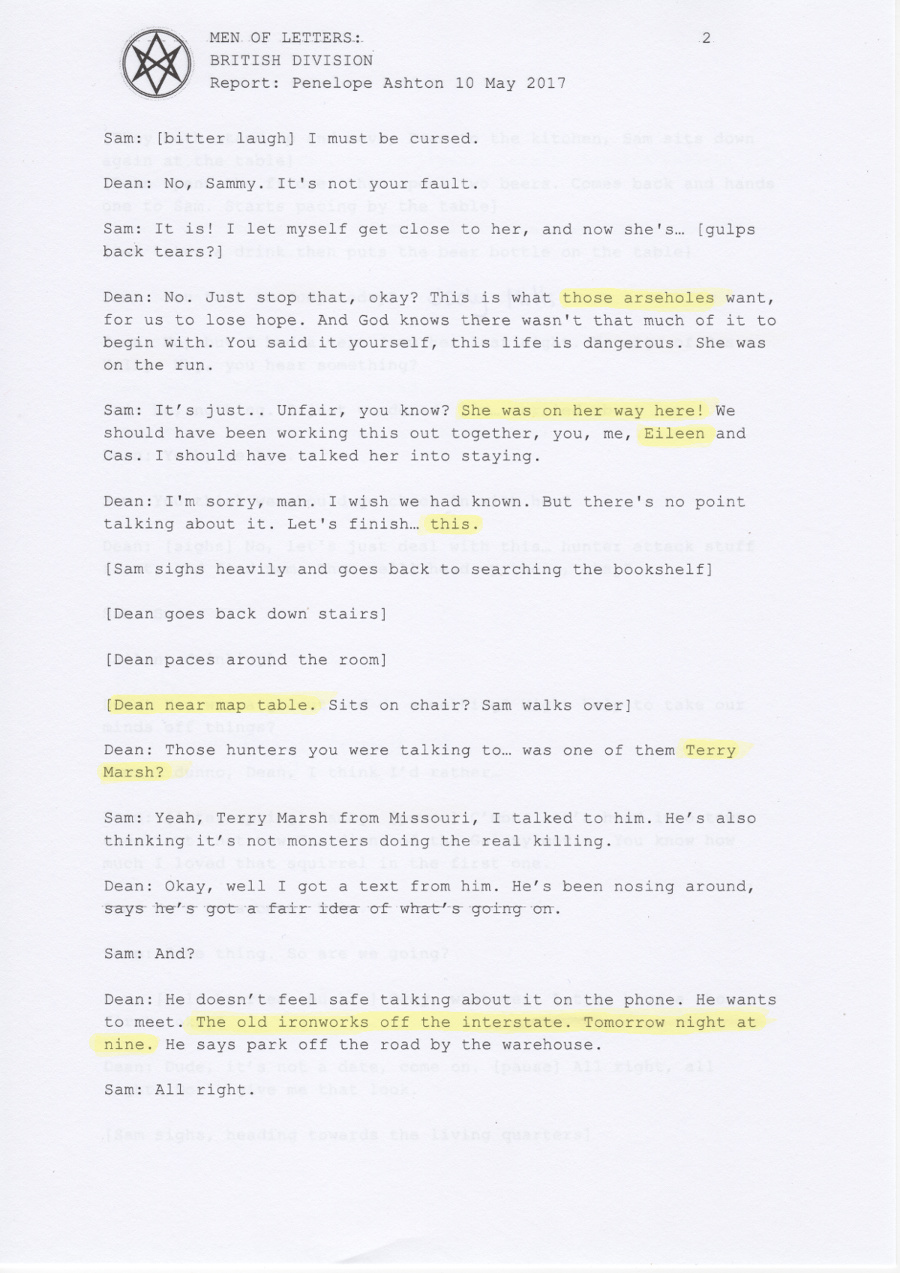 Dean: Yeah. I thought you listened to my messages? She was helping us find Dagon last time. She and Sam have a... thing going on. It’s cute.