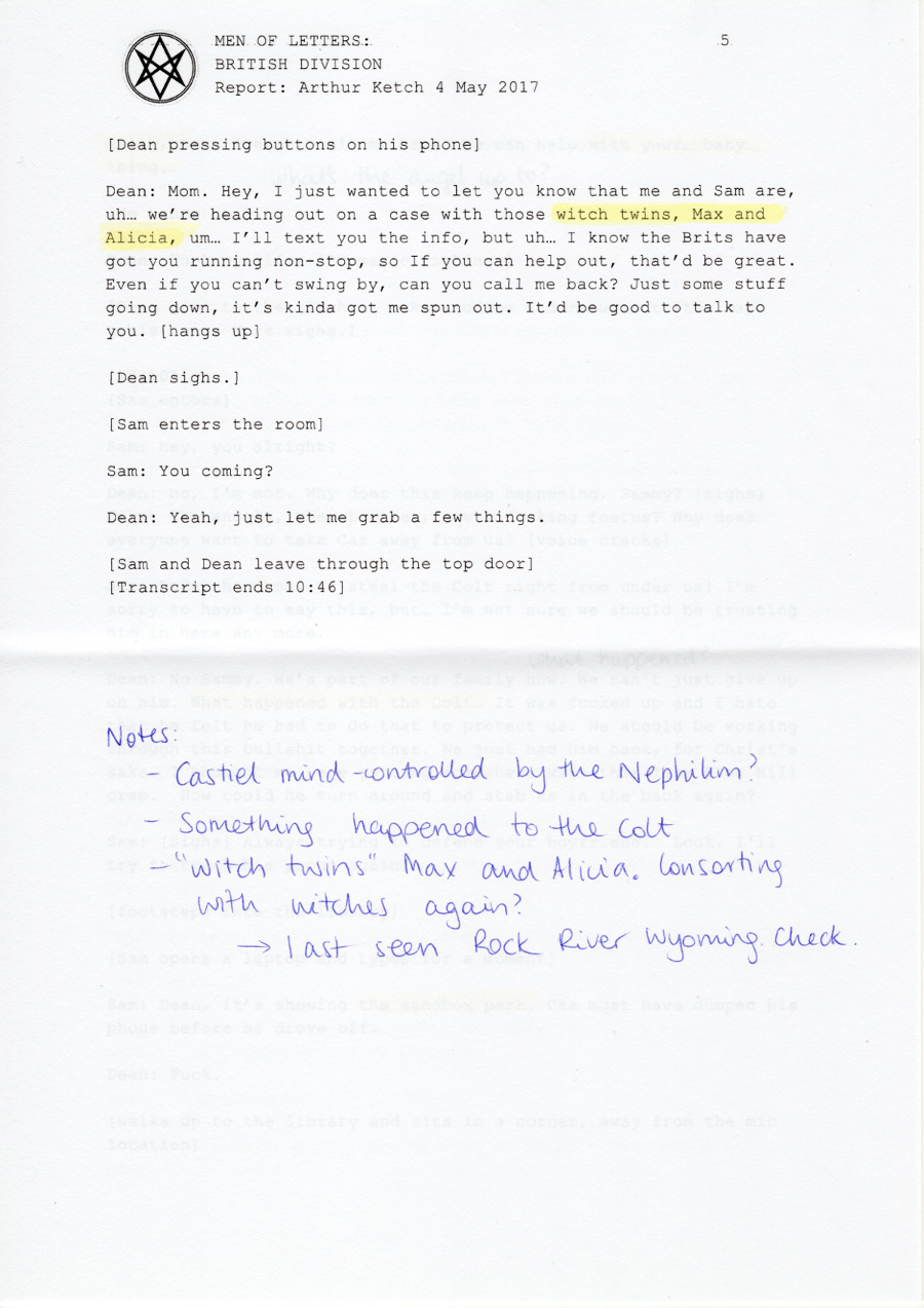 Sam: Hm, Cas’ phone.