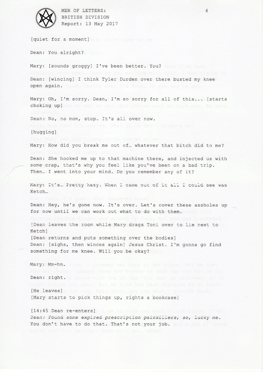 Mary: Where's Dean? [pause] Oh, God. What happened?