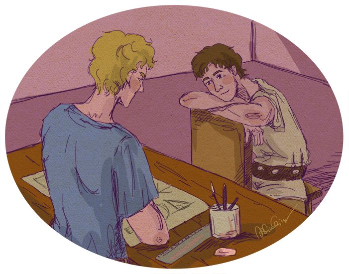 His cheeks warmed up when he could still feel Jason's eyes on him even after several moments had passed, but he stubbornly refused to acknowledge his friend's searching gaze. Instead, he bent down and scribbled down some equations, humming softly for added effect. After a while the warm tingling under his skin stopped, letting him know that Jason finally turned back to Hercules.