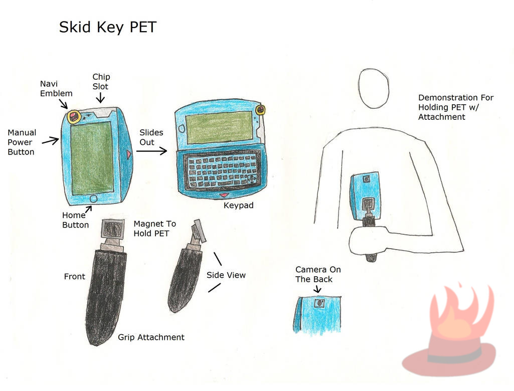 This PET was different from the ones that have been out over the years. It’s called the Skid Key PET, SK PET for short. This one was in a slightly rectangular shape with a screen in a perfect rectangle. There was a slot for chips at the top with the Navi emblem on the left to it, and a manual home button below the screen. On the right side of the screen, there was a keyboard that slides out, hence the name. It was good for typing if you didn’t want to dirty the screen with your fingerprints.