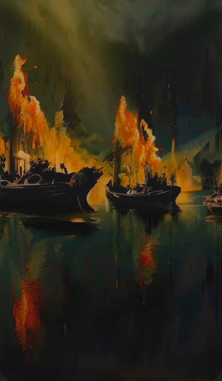 Hæsten didn’t answer, he couldn't. Instead, he tried to push his thumbs into Uhtred’s eyes, desperate to escape his grip. But Uhtred raised his chin, kept his eyes barely out of reach, and Hæsten’s fingernails burned bloody furrows across his cheeks as he tried to gain purchase. From behind, an arm pressed against Uhtred’s throat as someone tried to choke him back, and Uhtred grinned, demented. It was useless. Their attempts at stopping him were laughable. Why would he breathe when the only need he had was for revenge, hatred burning, feeding him. Uhtred didn’t need air, no, he needed to see Hæsten’s eyes pop out of their sockets. He needed to pull his tongue out by its root.
