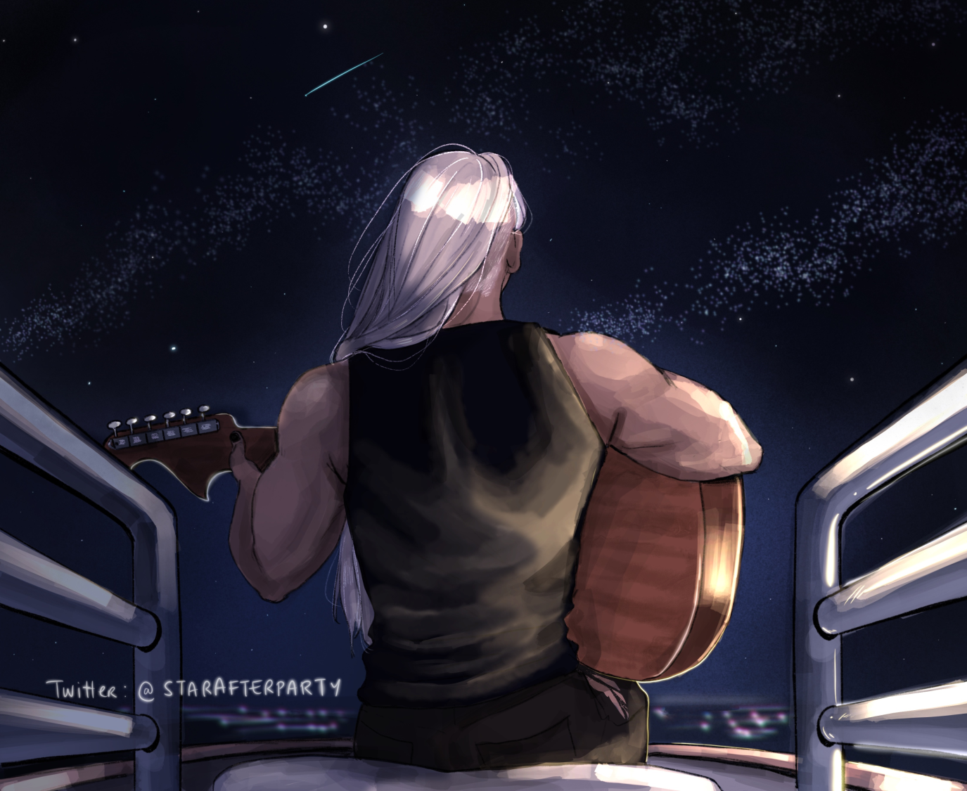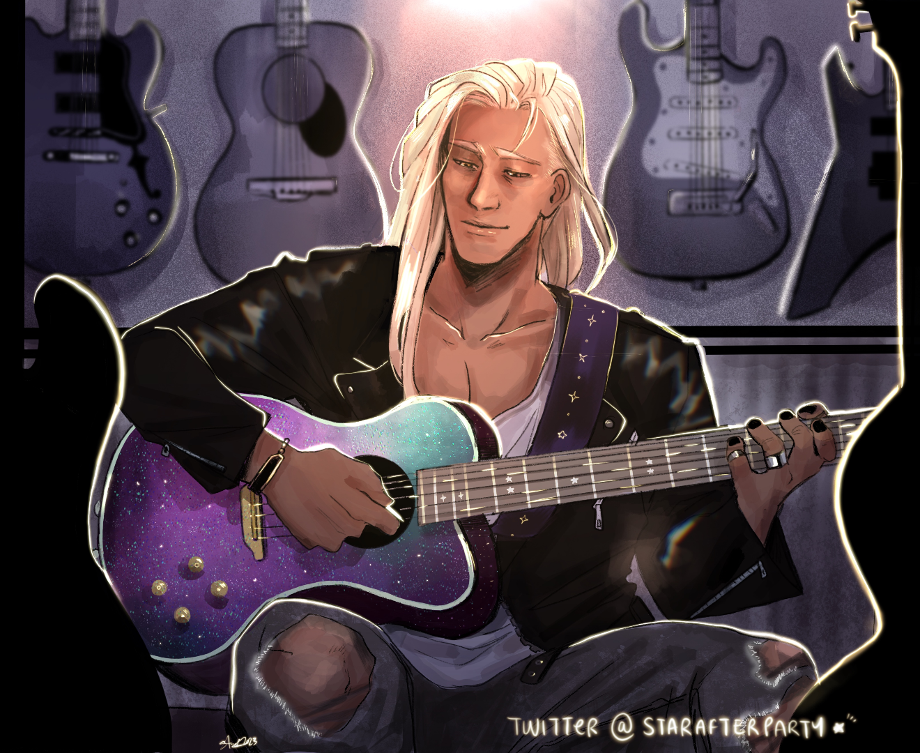 “Are you feeling romantic tonight, New York? I know I am.” Than winks and flips his long platinum blonde hair over his shoulder, trusting the camera crew to find the best angle. He slings the strap of his favourite electric guitar around his neck and glances back to the band, poised and ready. He runs his fingers lovingly over the lacquered neck, ready to play the first chord. “This one’s from my first album…” He plays a melancholic set of chords, smirking as the crowd reaches new levels of excitement. “Yeah, you know it. Let’s go.”