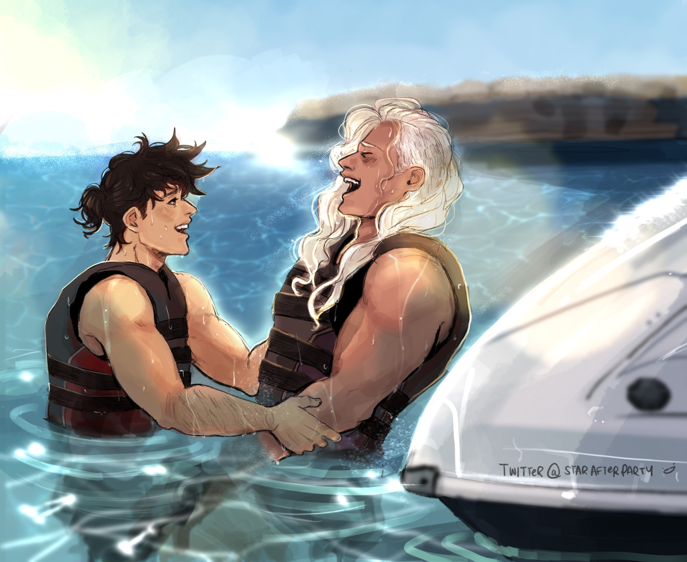 “Don’t talk with your mouth full, Zagreus, did I teach you nothing? I don’t want to cook for rich people on a fancy boat.” Zag shoots her a look. “I don’t want to cook for rich people on a fancy yacht. I only want to cook for you, agori mou.”