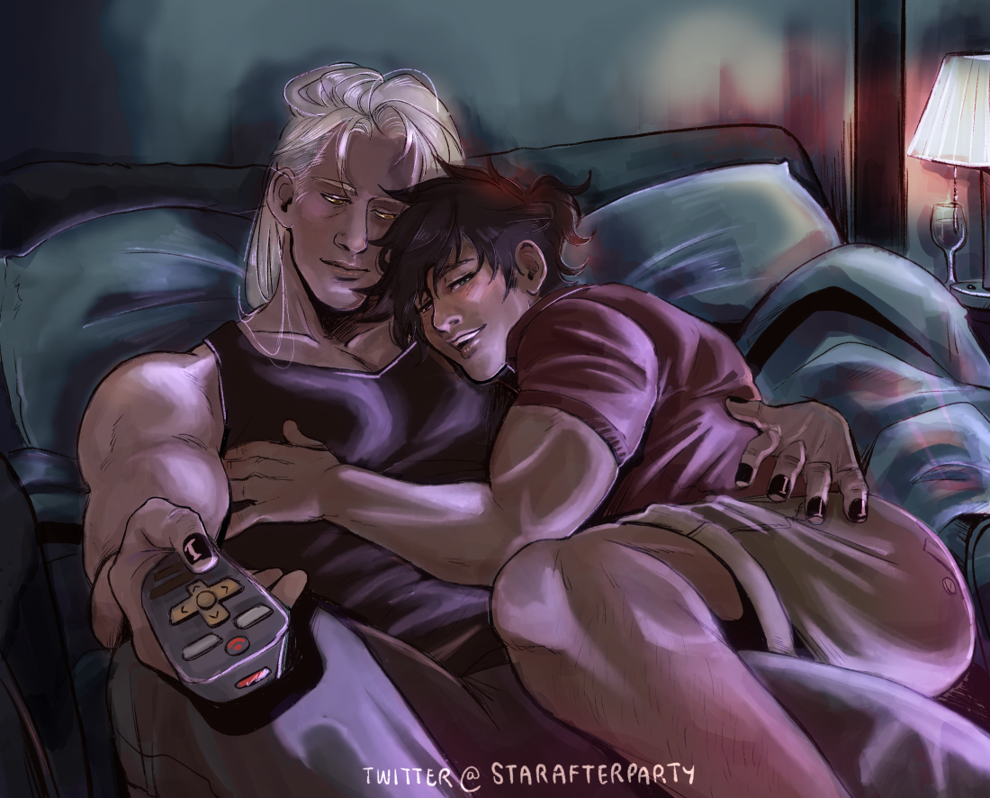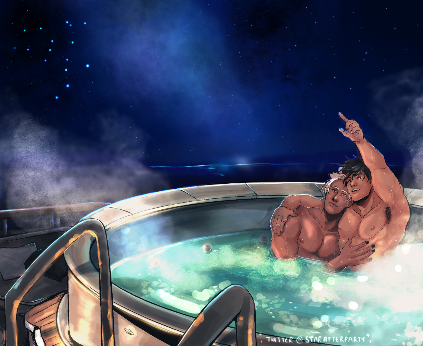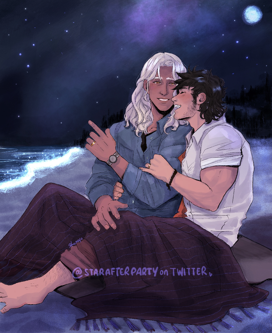 Eventually they finish the bottle, cuddled under their blanket on the cool sand. Everything feels like it’s in soft focus, Zag’s half tipsy brain full of joy and contentment. He flops backwards, taking Than and the blanket with him. “I love you.”