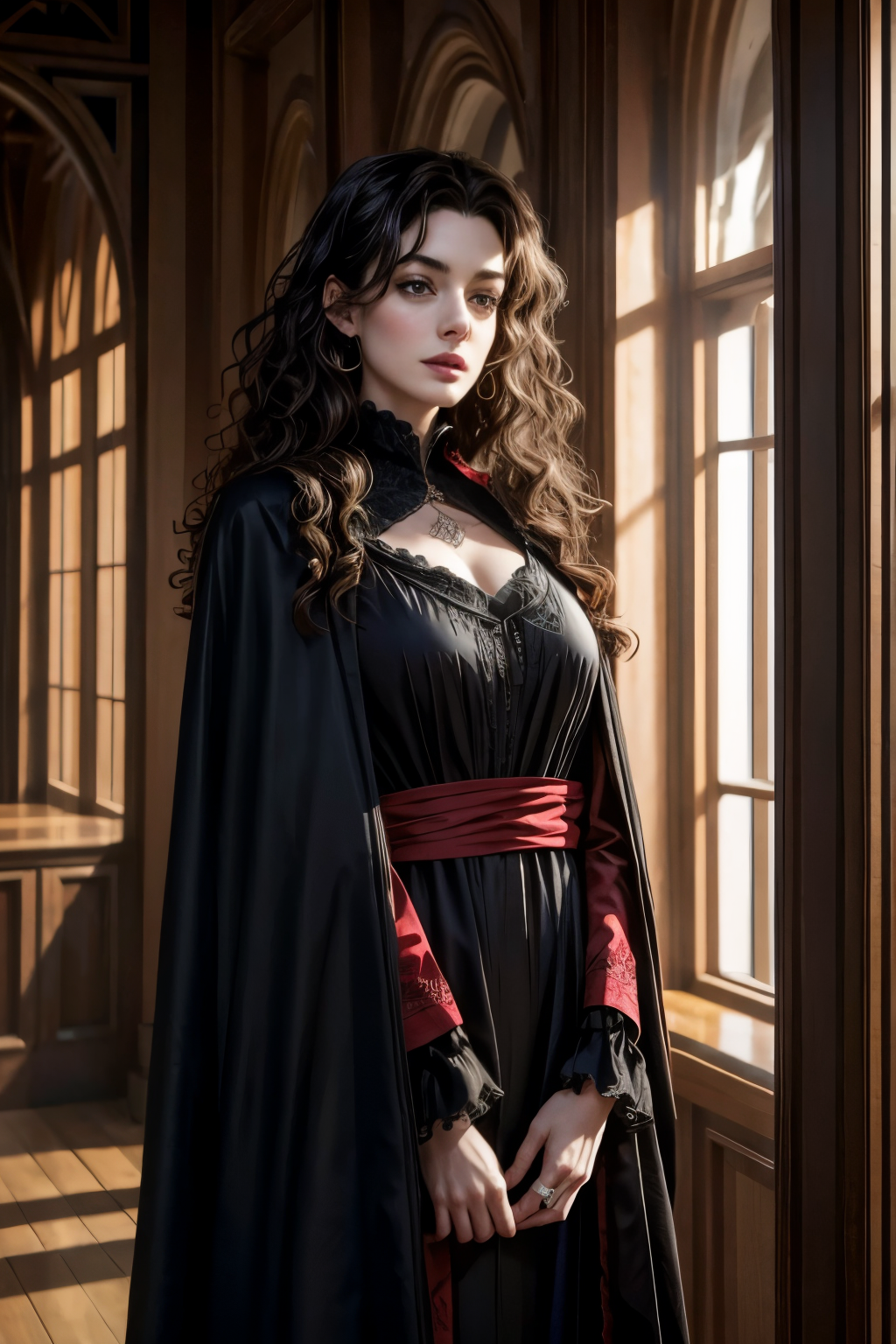 She was tall at 5’10” with vibrant red hair that she wore up in a bun and the red robe of an auror. She was a beautiful woman though her expression was all business.
