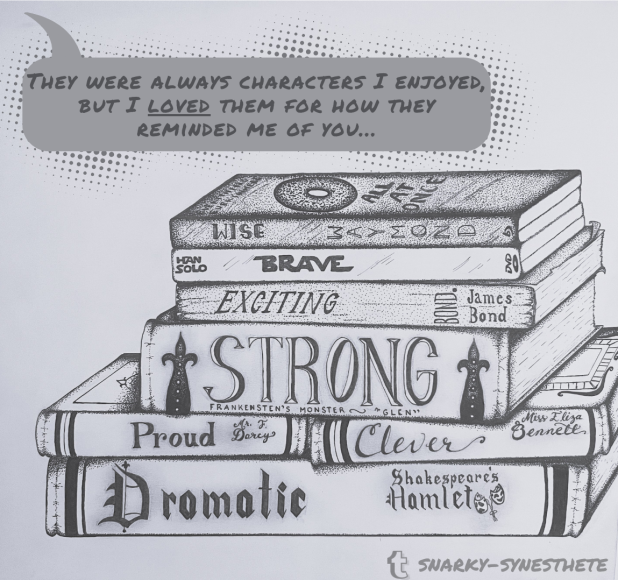 Aziraphale stood and walked among his shelves. “I was looking for characters to fill my fantasies for all the time I knew I couldn’t have you. Is it truly surprising that I was drawn to heroes who were…”
