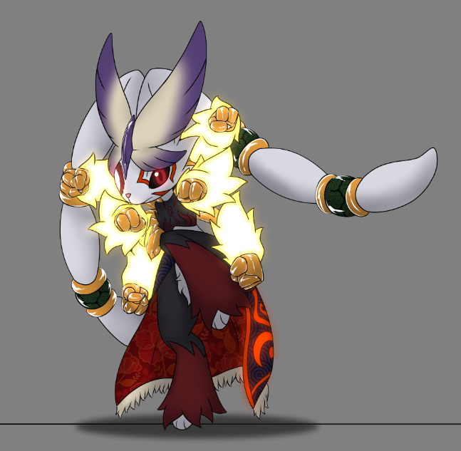 “ We aren’t done here. ” She growled, before vanishing in a flash. Kizu’s ears flattened against her head as she looked around in surprise, though they shot up when her cheeks clapped like thunder. The Zoroark squeaked, before finding herself lifted up and over the Lopunny’s shoulders, landing onto her back with an oomph. Her vision wobbled about for a few seconds before correcting, staring up at the crossed arms of the Mega Lopunny standing above her, small red sparks jumping off of Nix’s metal arms.