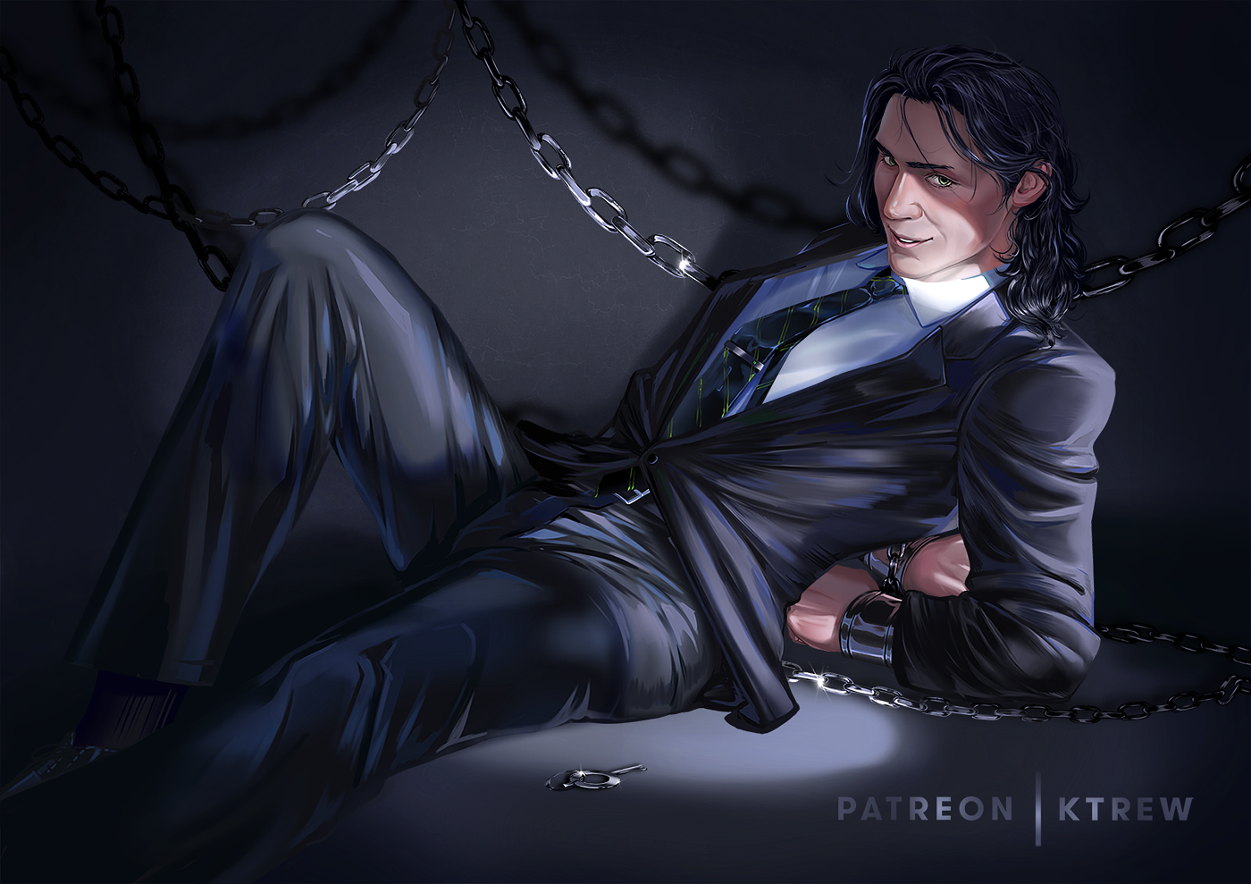 Loki glances at Tony and flashes him a seductive smile, the one that says “oh, I'm sexy and I know it”, but then quickly returns to disentangling himself out of the shackles and chains. After a moment, he finally sits down on the floor, legs crossed, rubbing his arms and wrists, and letting out tiny hisses of pain. Apparently, lying in an uncomfortable position can make even god’s limbs go numb.