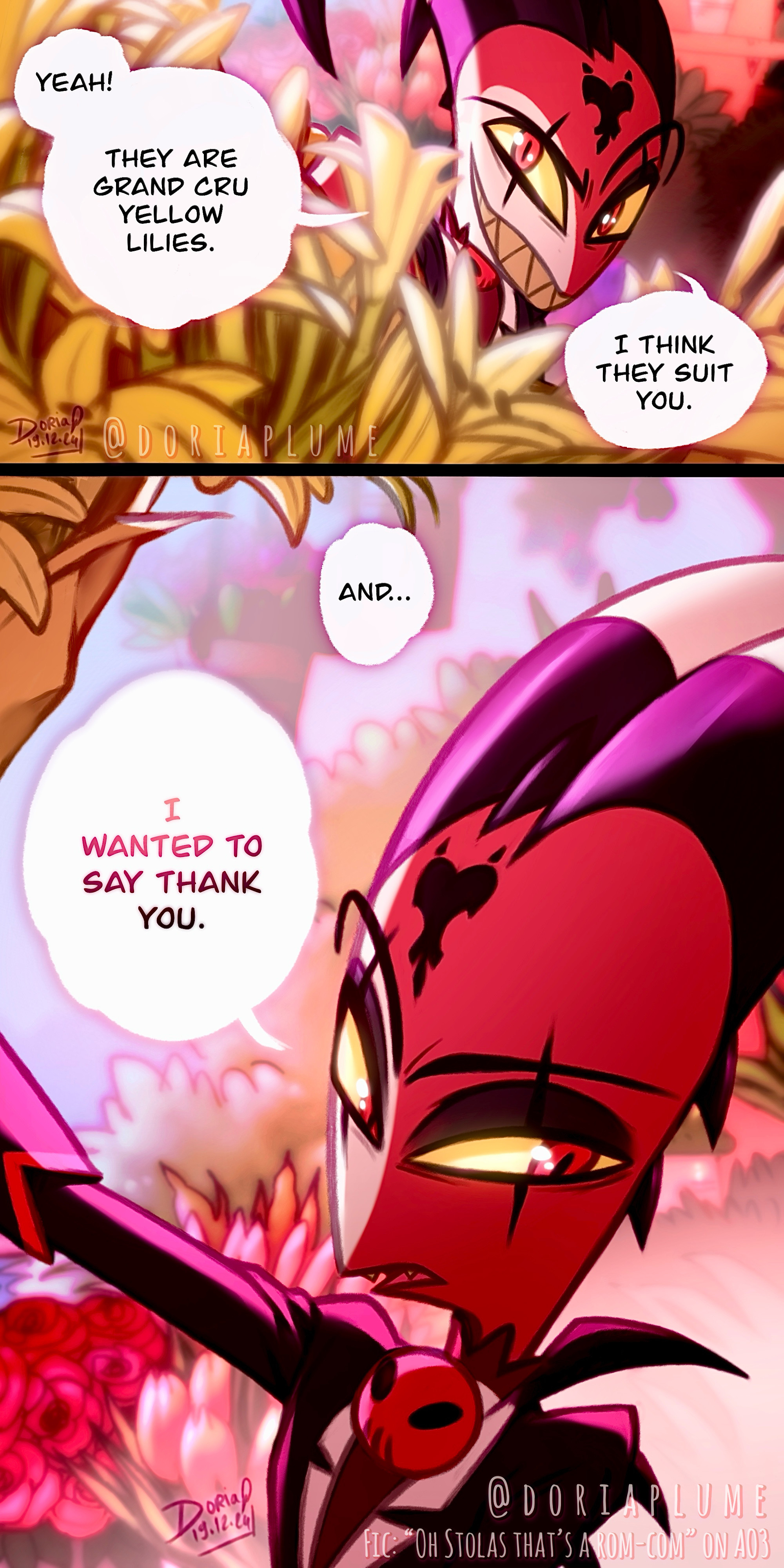 “Are you kidding?! What have I been doing since that fucking night, Stols? A bunch of dumb rom-com shit to get you to even speak to me, to look at me, everything was for you!” He was still shouting, as if the louder he was the clearer his message would be to Stolas.