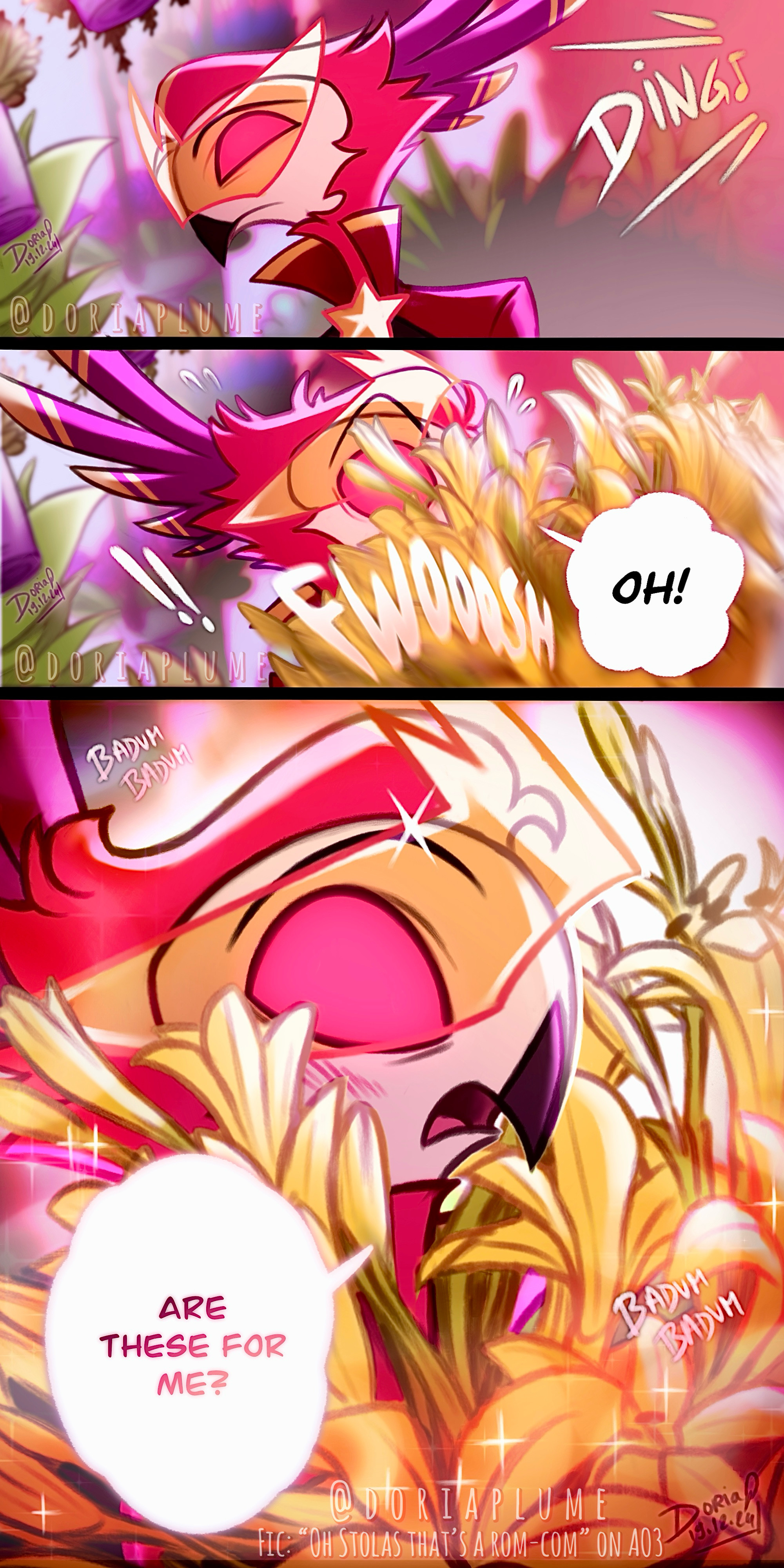 “It's romantic! You said you wanted a romance like in the movies.” Blitzø got closer again, he was so close to reaching out. Every part of his body wanted to just touch Stolas, to take his hand into his own. Even as the shitty low part of his mind told him he failed again, that he should give up and stop ruining Stolas’ life.