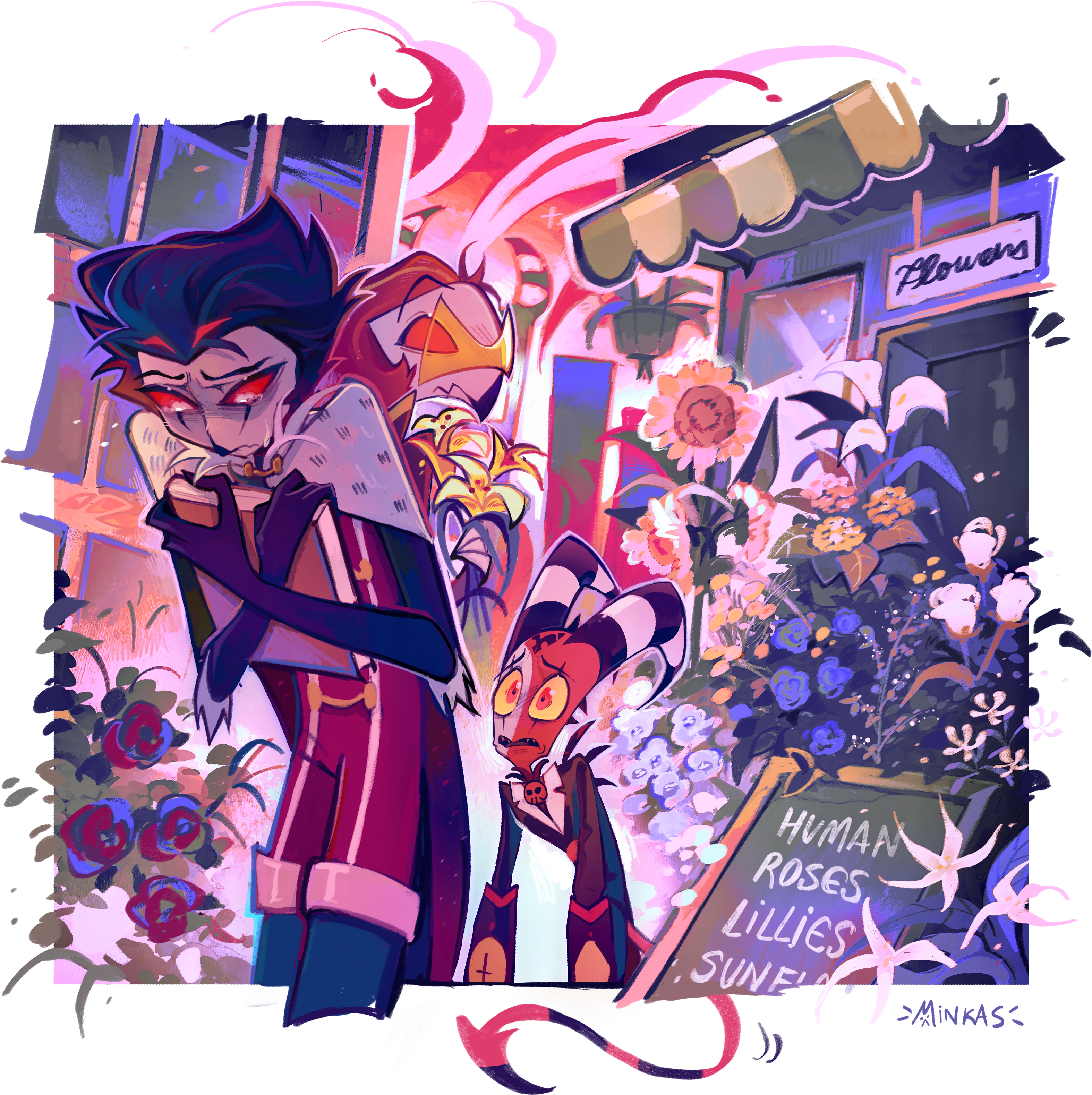 “Uh, work is good, taking on a lot more contracts.” Blitzø rubbed the back of his head. A waiter came over before they could continue. Blitzø ordered an iced coffee with extra sugar and Vassago chose a vanilla almond latte. “Are you friends with Stolas?”