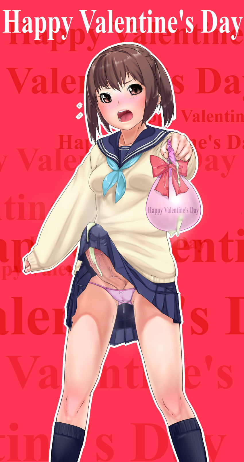 Happy Valentine’s day. I know you love to drink my cum, so I made some fresh for you. Don’t get any weird ideas, though, this is just your obligation gift. It’s not like I like you or anything…