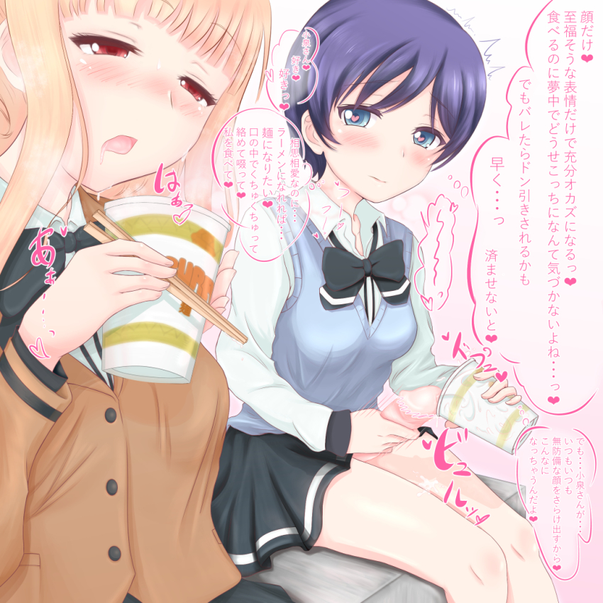 How did a plain, boring, nobody of a futa become friends with a popular girl like her? It turns out she’s a big foodie and when she heard that futa cum is a delicacy, she decided she needed to try it. I’m the only futanari around, so she came to me. We’ve made a nice partnership. She can’t get enough of my fresh cum in her food and seeing a cute girl slurp down my semen gets me so horny I can’t help but fuck her.