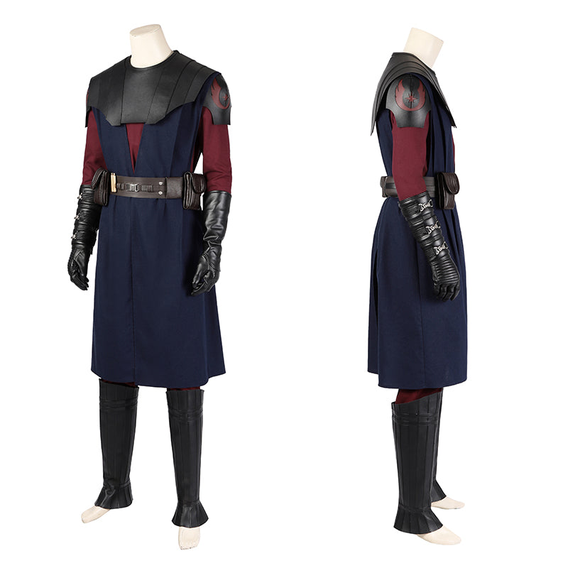 • Vest & Tunic: Jet-black layered robes, tailored close at the waist and shoulders, echoing the traditional Jedi cut but pared down for mobility. The fabric is woven from Armorweave, light yet blaster-resistant, with stress-point reinforcements to endure the rigors of war. Beneath it lies a softer underlayer of duran-fiber cloth, chosen for its flexibility and breathability during long campaigns.