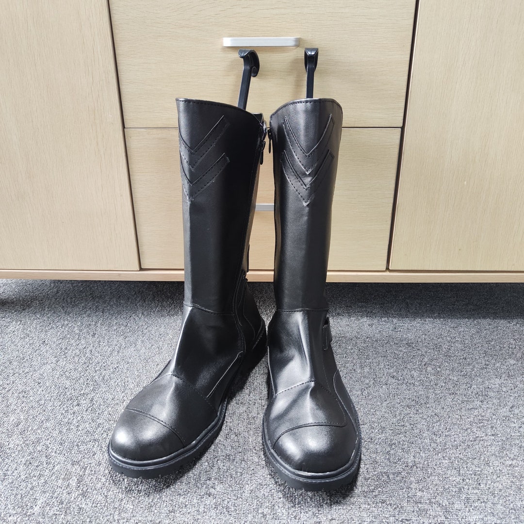 • Boots: High black leather boots reinforced with thin plates of hardened synthhide, giving subtle protection at the shin and heel. Their pointed stitchwork recalls Je’daii motifs of ascension — a quiet nod to heritage without breaking the robe’s utilitarian character.