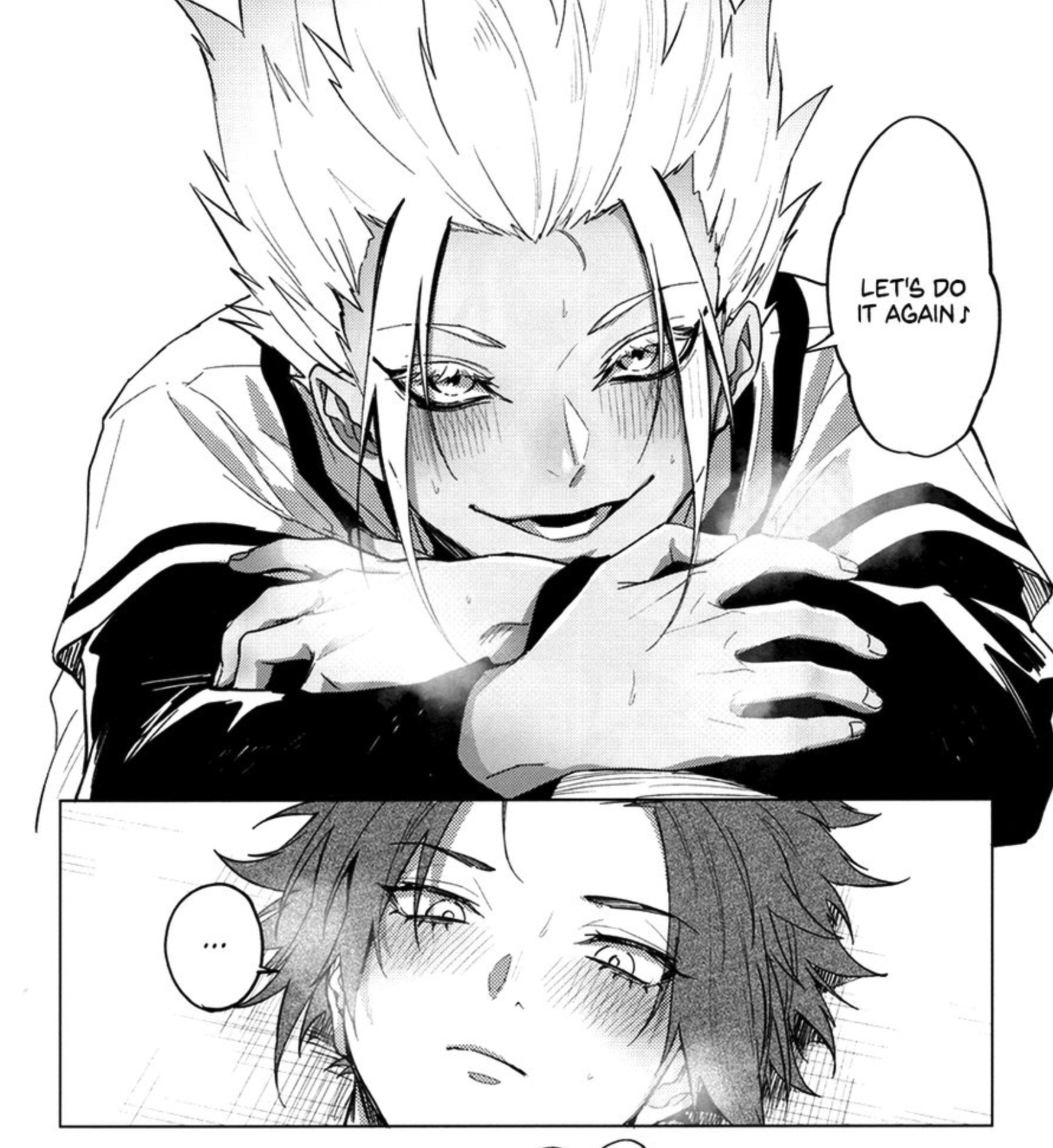 Clearly Shidou’s face betrayed him because Sae smirks, enjoying his discomfort. “Having second thoughts?” He taunts, voice low and challenging. “Or are you just pretending to be disgusted?” His teal eyes gleam with mischief and desire as he continues his deliberate movements, the friction causing him to let out a soft grunt of self-satisfaction.