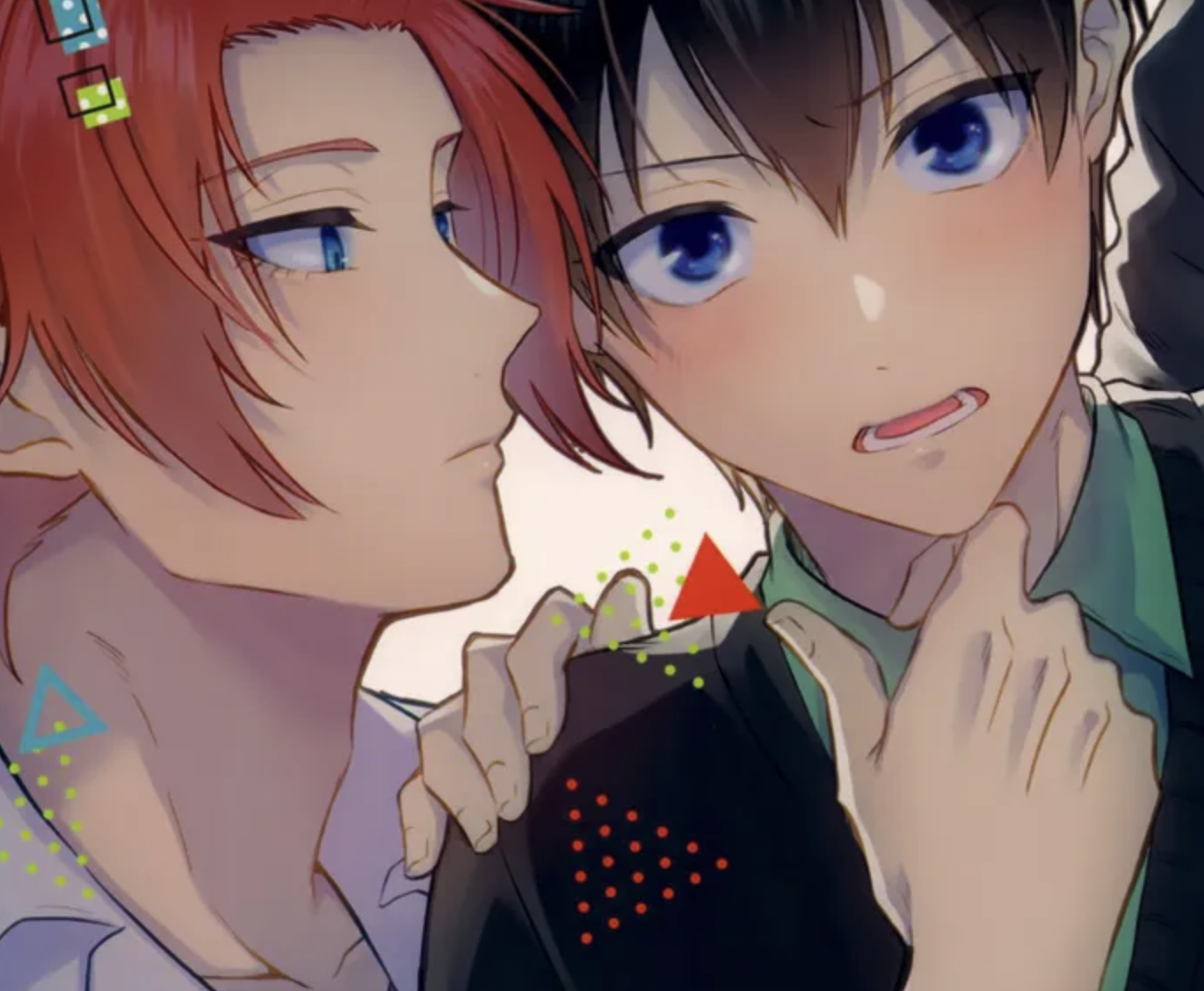 Without warning, Sae crashes his lips against Shidou’s in a fierce, angry kiss.