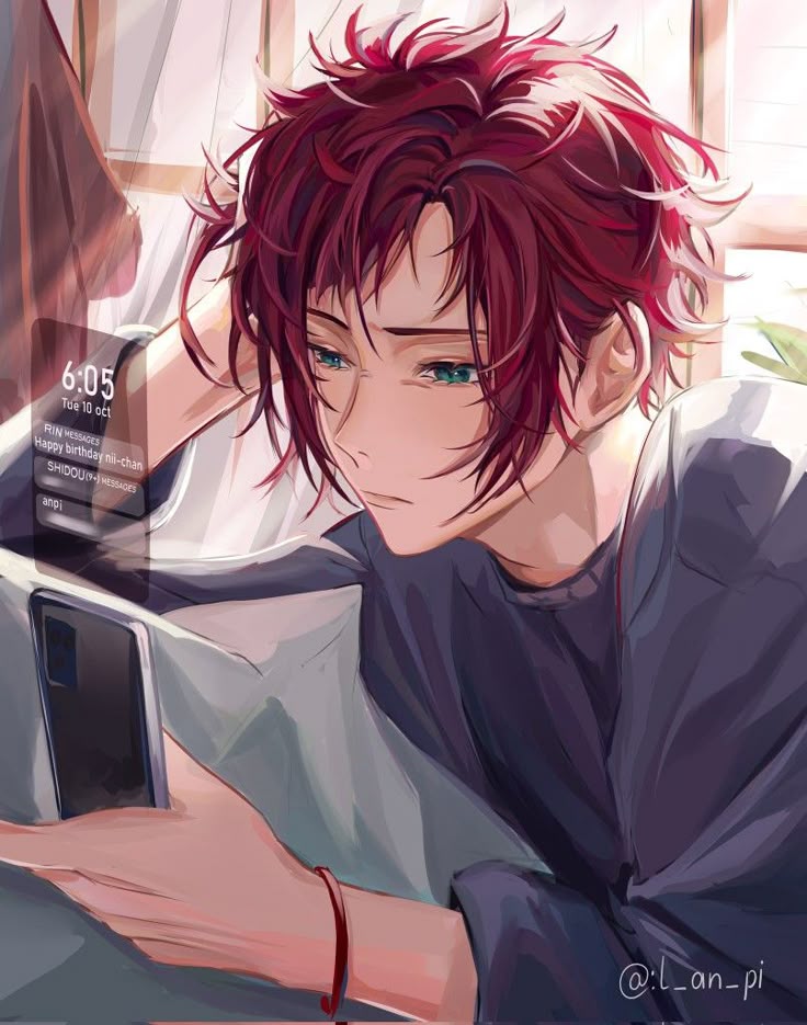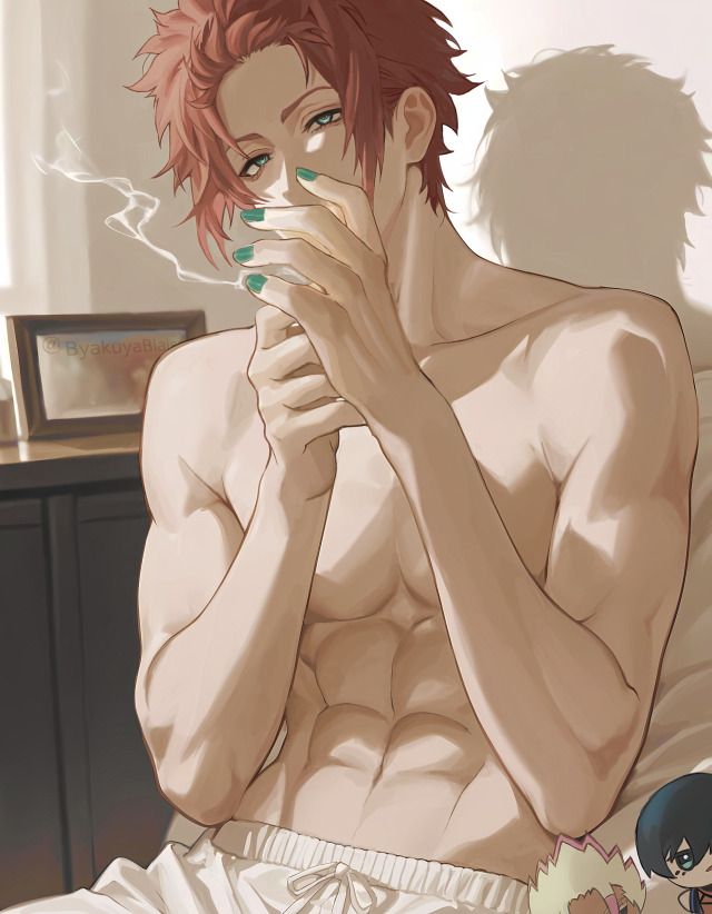 Ryusei closes his eyes once more, letting the scent wash over him and shutting everything out except the fragile weight in his arms. Sae smells like he belongs to him—and the thought fills him with a sick, selfish joy he knows he has no right to. He breathes him in, greedy and silent. The magenta-haired man would never say out loud that he belongs to Shidou, but he knows.