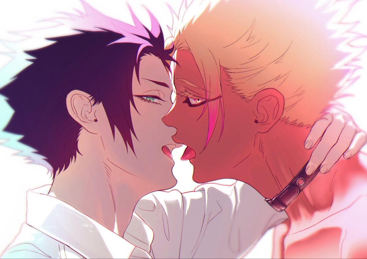 Sae shifts, his hand curling further into the back of Ryusei’s neck. The blonde responds instantly, sliding an arm around the other’s waist and easing him in until their bodies fit against each other.