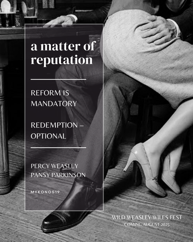 “You’re right,” Pansy agreed, her voice rising . “It is fine. While your family may not be able to accept that you’ve repented and are trying your fucking hardest to make up for what happened during the war, I can see that. So can everyone else who’s met you and spoken to you over the last few months. Ask anyone else here and they’ll say that nobody wants reform more than Percy fucking Weasley.”