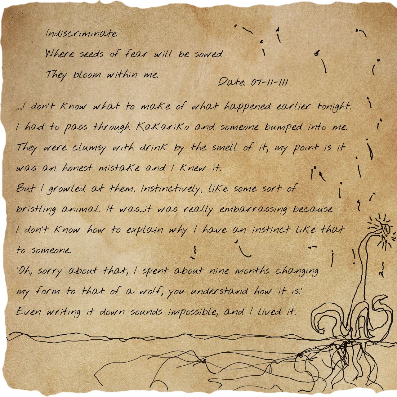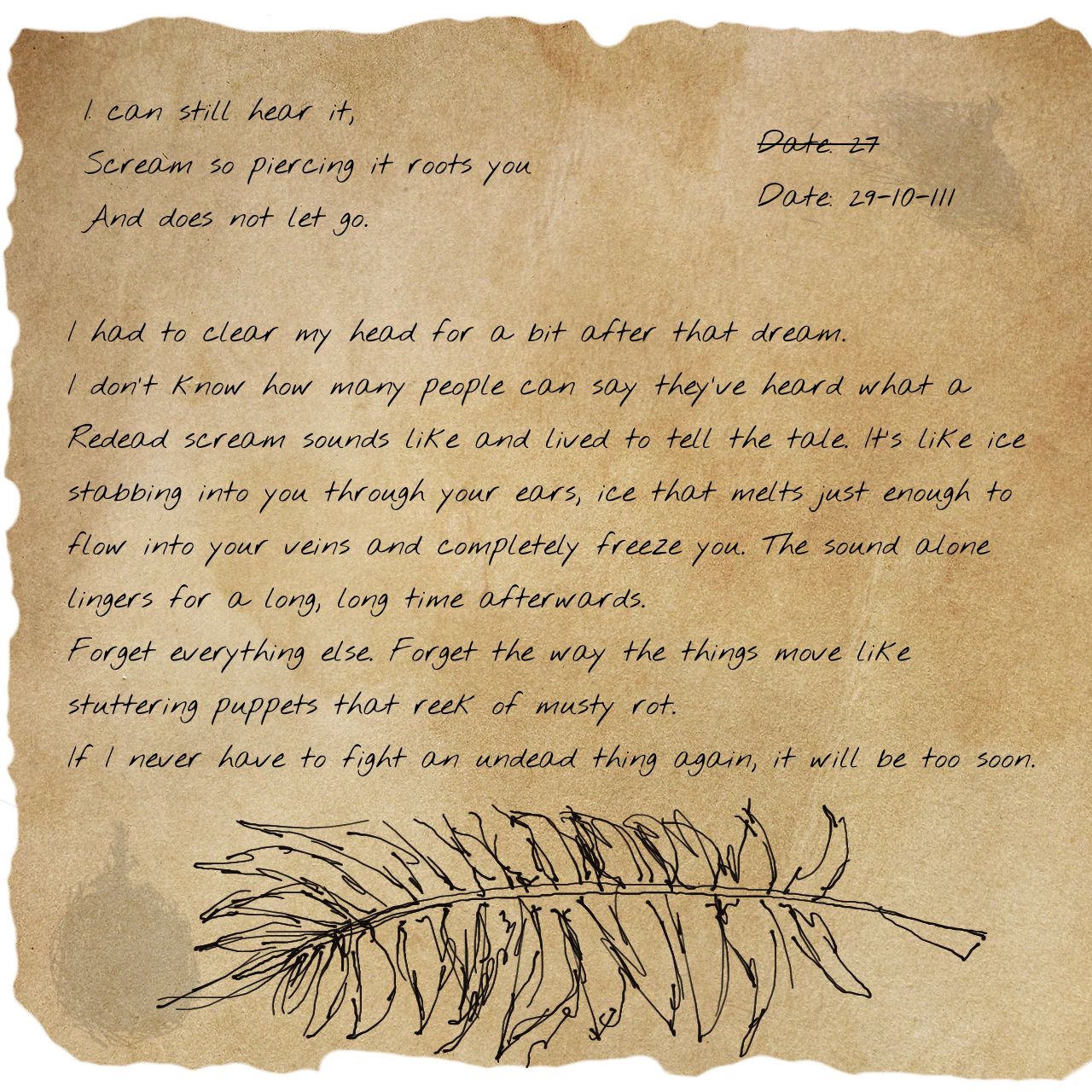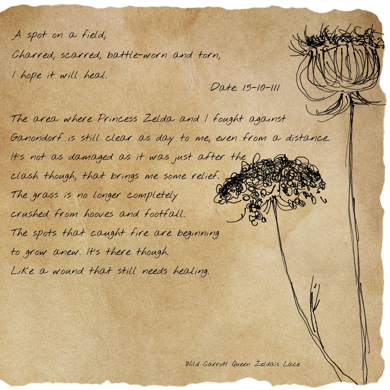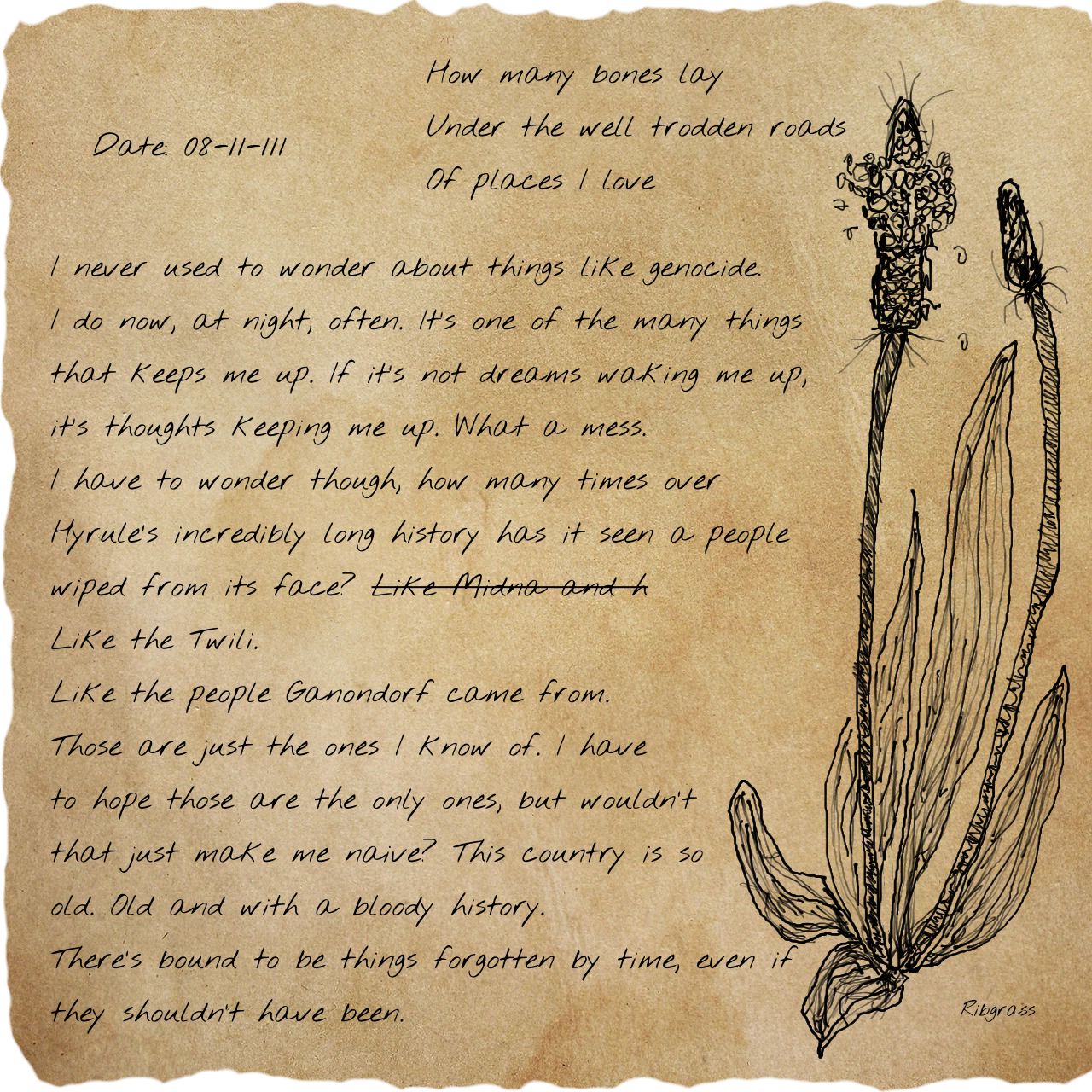 Carefully, as to not damage the small journal, Link tore a page from it, quick to write a note before leaving his home in Ordon once more. What he wrote was short, simple, and read: