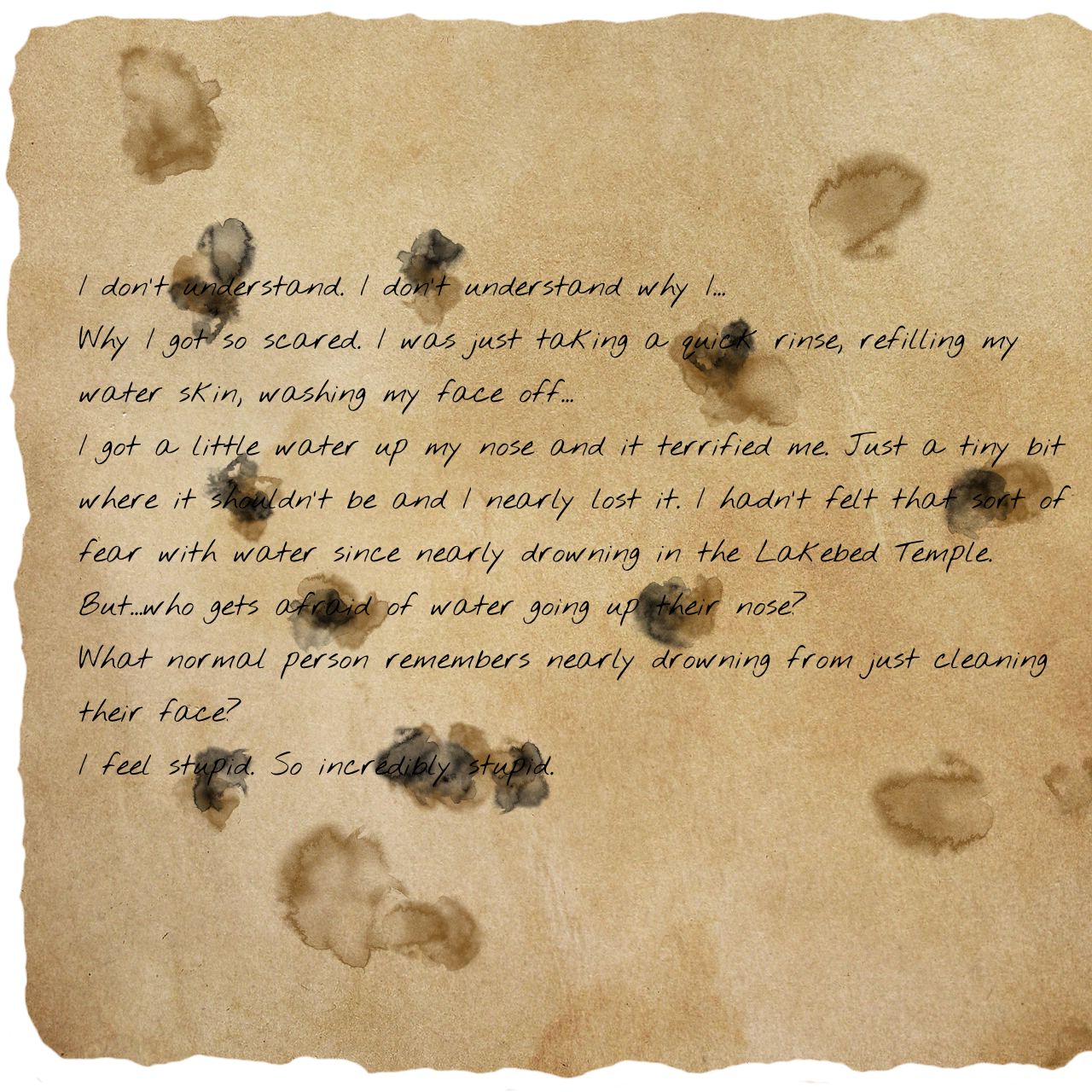 I got a little water up my nose and it terrified me. Just a tiny bit where it shouldn't be and I nearly lost it. I hadn't felt that sort of fear with water since nearly drowning in the Lakebed temple.