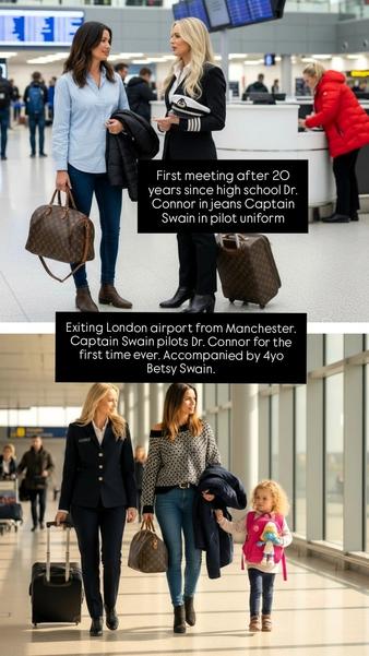 Lisa had taken off her cap and placed it neatly beside her tray, her carry-on pushed against the side of their table. Her blonde hair was longer than Carla remembered, pulled back loosely so that strands slipped free around her face. Her uniform jacket was unbuttoned at the collar, the white shirt still crisp despite the hours she’d been wearing it. She looked older, yes—they both did—but her posture hadn’t changed. Straight-backed, composed, her gaze as direct as ever. She studied Carla with the same quiet focus she always had, as though she was waiting for her to make the first move.